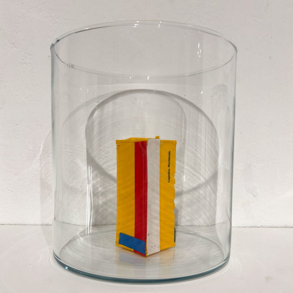 Es geht um Ordnungen und Regelwerke, die Aufdeckung falscher Versprechen und den Versuch diese aus unterschiedlichen Richtungen zu konterkarieren. Viele der Arbeiten sind im Jahr 2025 entstanden. Sie bestehen häufig aus vorgefundenem Material, das spielerisch in einen neuen Zusammenhang gebracht wird.
